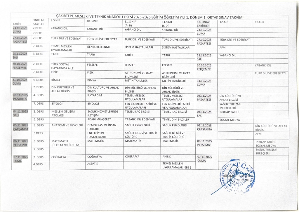 2025-2026 Eğitim Öğretim yılı Ortak Sınav Takvimi...